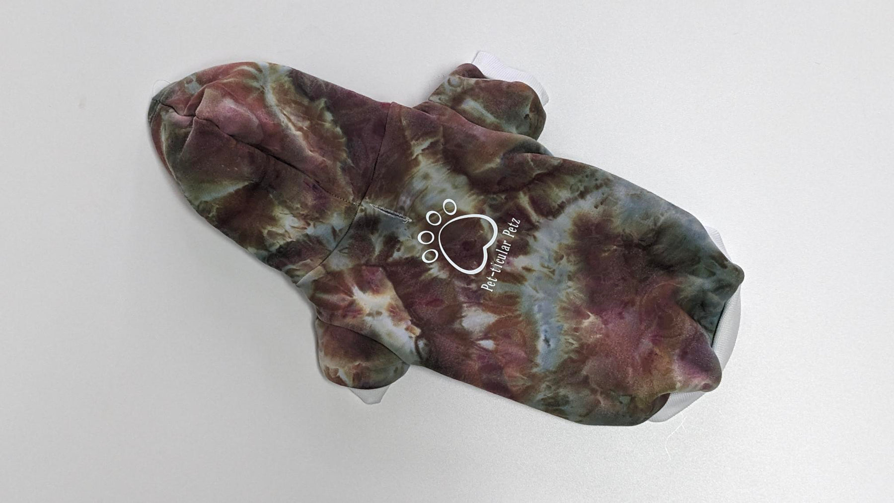 Your fur-babies will have no issues going outside on the cooler days with our one-of-a-kind Ice Dyes. Double stitched in all the right places for comfort and durability made on a 35%poly/65%cotton soft blend fabric.